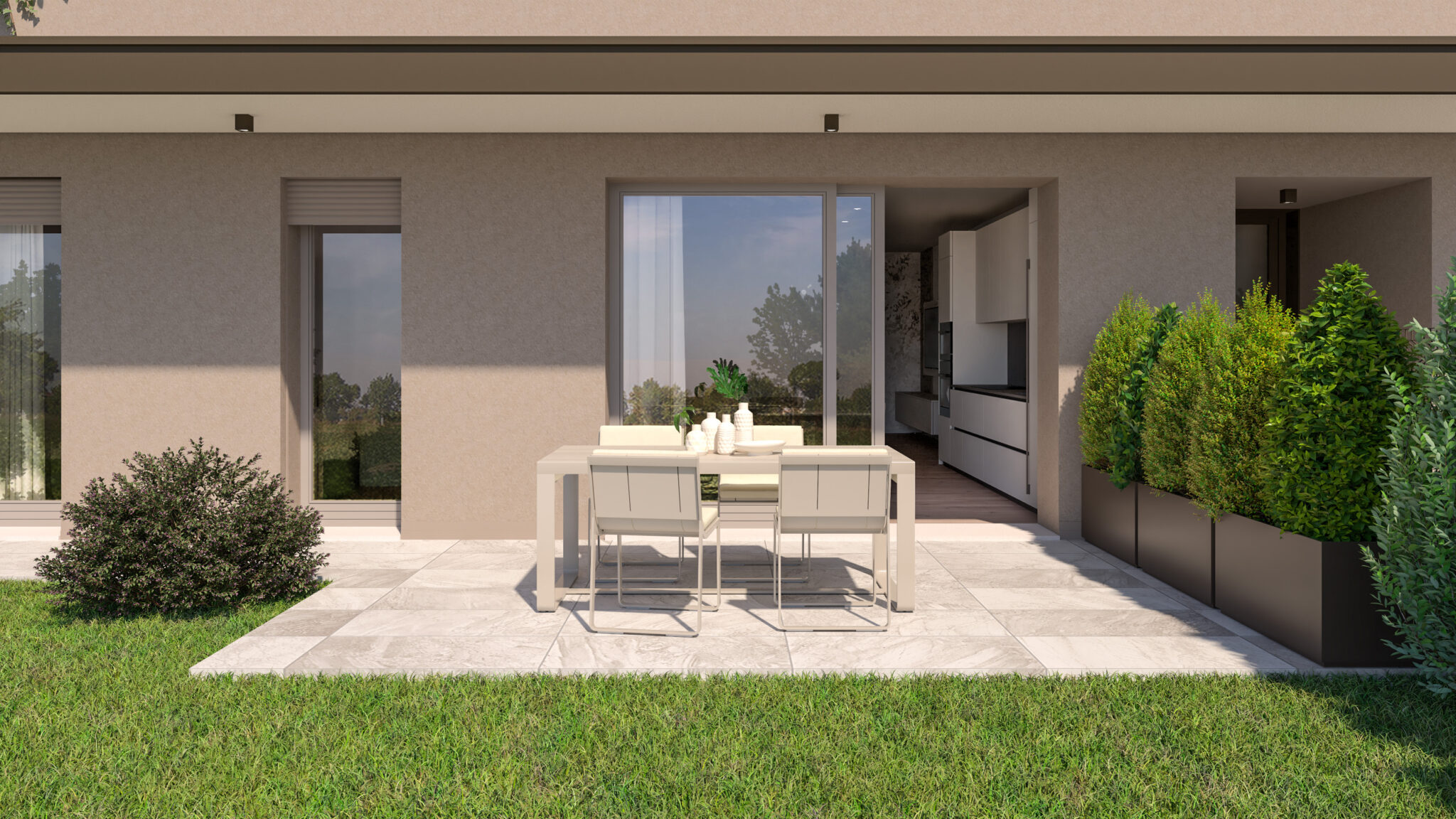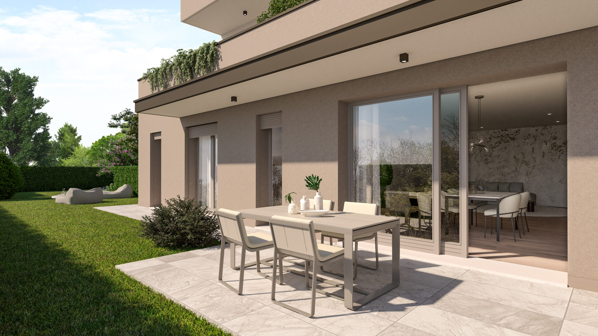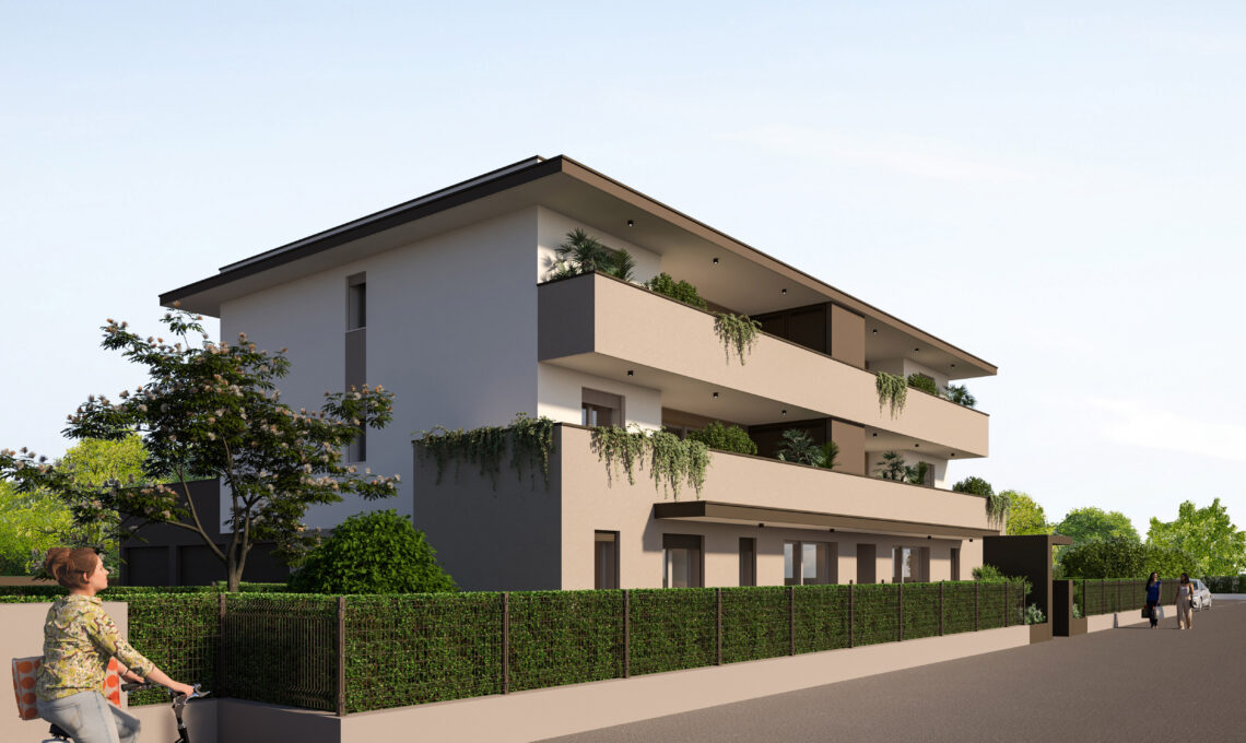 Prossima costruzione su palazzina composta da n° 6 unità immobiliari, proponiamo appartamenti con giardino privato o terrazze coperte abitabili, in pozione comoda ai servizi in zona residenziale e tranquilla ma fuori dal traffico. I materiali che saranno utilizzati nelle finiture interne con la possibilità di personalizzarle, concorrono a definire ambienti eleganti e accoglienti, studiati per assecondare le esigenze di spazio e luce di chi li abita. Disponibili appartamenti con ampia zona giorno open-space, tre camere, due bagni, ripostiglio, garage e posto auto e a scelta giardino privato o terrazze coperte abitabili. Le unità abitative saranno certificate in classe ernergetica A 4 a fine lavori. Gli appartamenti saranno dotati di riscaldamento a pavimento in pompa di calore, aria condizionata canalizzata, predisposizione impianto d’allarme, tapparelle elettriche, serramenti in pvc, antenna satellitare, impianto fotovoltaico dedicato.